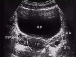 图示1为B超监测下的卵巢和发育的卵泡,当卵泡发育至一定的经线,结合血激素的结果可以确定合适的取卵时间。