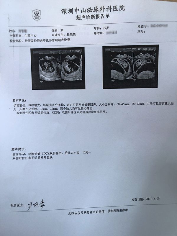 这一年说长不长说短不短,几经起落,好孕终不负她,获得圆满——首次B超提示宫内双胎,后续的B超监测也一路顺利,张主任再次看到李女士的时候,只见她的脸上多了一丝暖心的微笑……