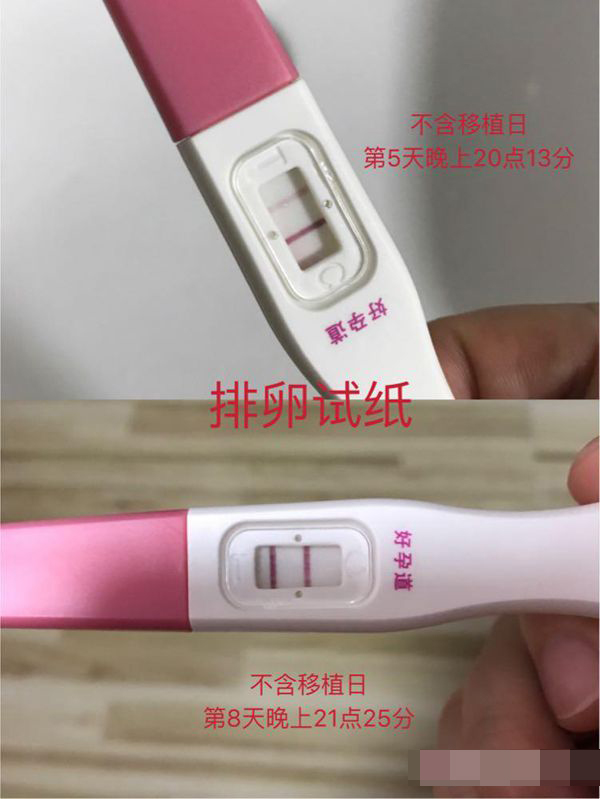 我继续补充着蛋白质食物,每天一瓶牛奶。也许也有点作用吧。我的胚胎估计着床比较早,我在移植第四天左右就明显感觉到自己可能怀孕了,因为比平时容易瞌睡,一侧腹部总是涨涨的,偶尔有点刺痛感,到第五天晚上也突然右边胸部刺痛了下,听说当人怀孕的时候排卵试纸也会强阳,于是第五天晚上先用排卵试纸测了下,有弱阳给了我点希望。