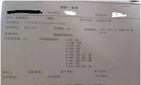接下来就是体外受精了,因为之前老公精子调理3年都没达标,怕精卵不结合,怀着坎坷的心情回院,结果取25个卵,成熟20个,结合19个,10个优质,9个非优质,听医生建议,全部养囊