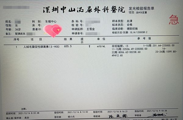 2021年5月份,慕名来深圳中山妇产医院咨询生殖助孕中心的徐士儒主任,徐士儒主任为我制定了拮抗剂方案。当时是王雪金主任为我监测卵泡的。