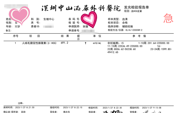 2023年1月,顺利移植1个囊胚,一次就接到好孕并顺利毕业。