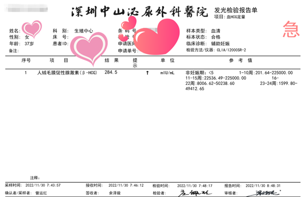 2022年11月,顺利移植1个囊胚,拿到验孕单的时候真的又惊又喜,好“孕”不怕晚,总算付出迎来了收获。“三超”顺利毕业。
