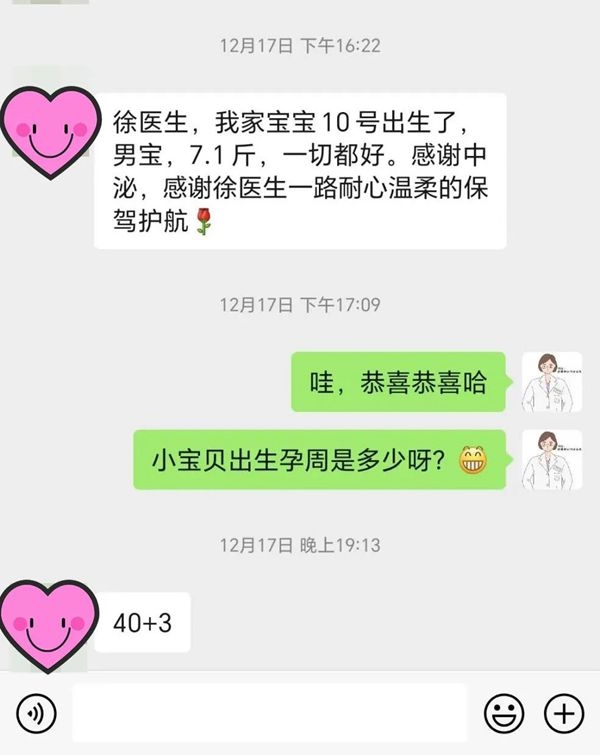 莫主任团队的徐芬医生很负责,“感谢徐医生一路耐心温柔的保驾护航”。