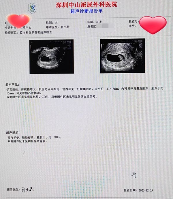 经过深圳中山妇产医院(原深圳中山泌尿外科医院)生殖助孕中心的莫美兰主任评估之后成功促排获卵,积累4个卵裂胚+2个囊胚;准备好了顺利移植1个囊胚。