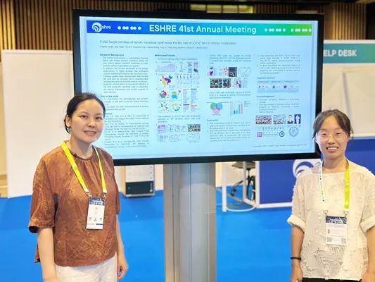 在ESHRE 2025年会上,我院生殖科徐芬医生和生殖医学临床研究中心杨玲桃博士参会。