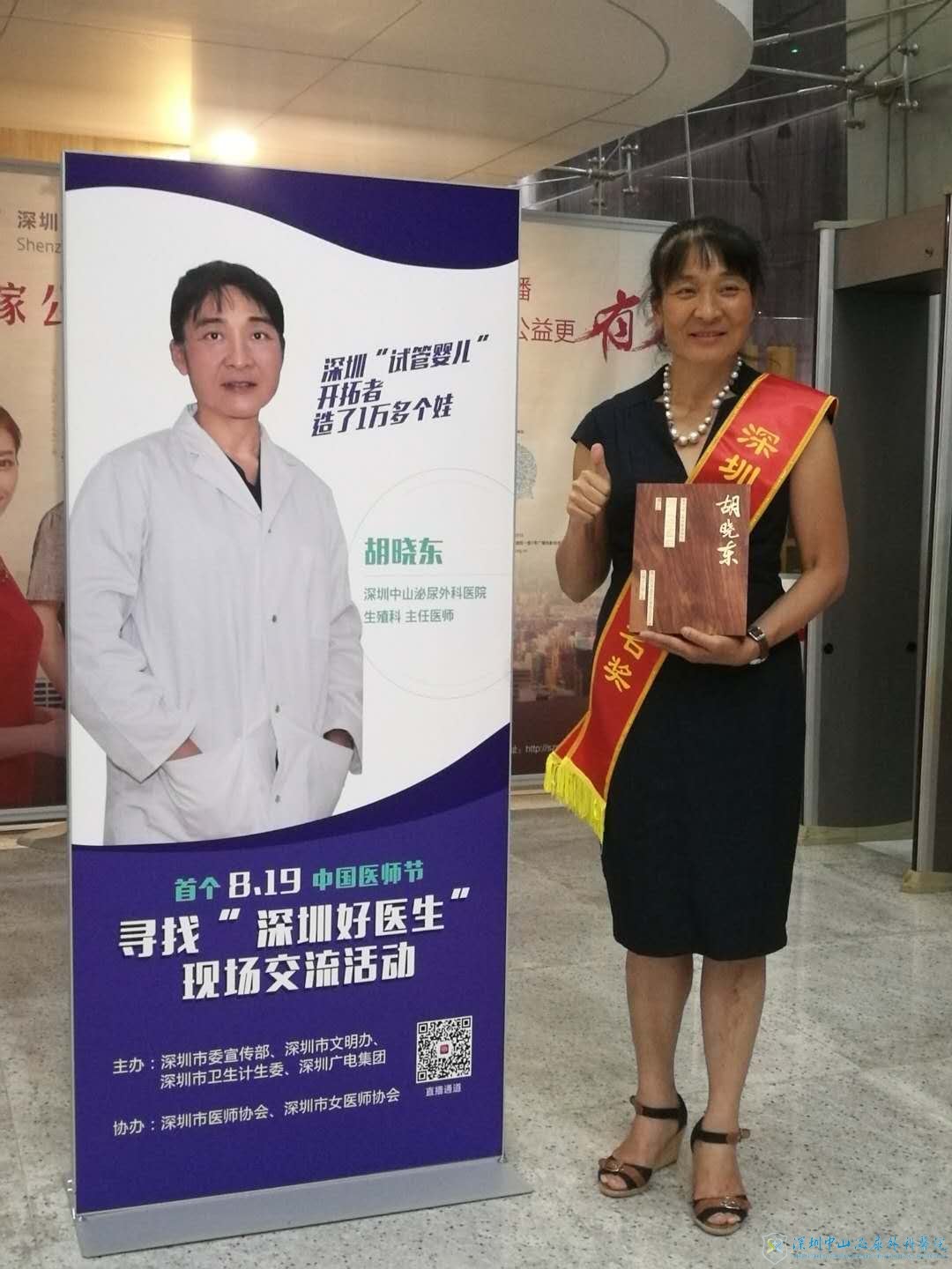 回望2018,在8.19首个中国医师节的现场,胡晓东主任荣获首届“深圳好医生”提名奖。此次评选活动由深圳市委宣传部、深圳市文明办、深圳市卫计委、深圳广电集团主办,历经专业评审(占80%)和网络投票(占20%)的两大考验,最后胡晓东主任在全市34000多名注册医师中脱颖而出。
