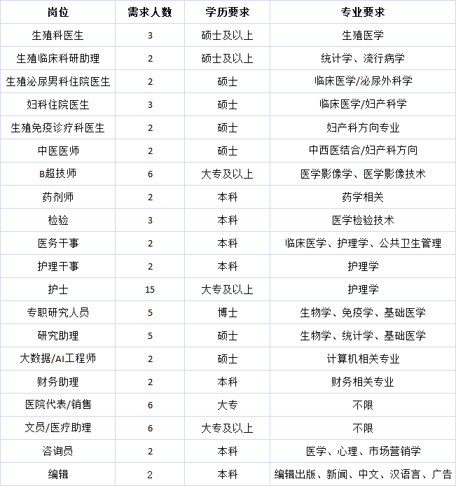 3.有扎实的专业能力和团队协作精神,身体健康,沟通能力强,吃苦耐劳,热爱本职工作,能适应医院的工作环境,与我院用人要求相匹配。