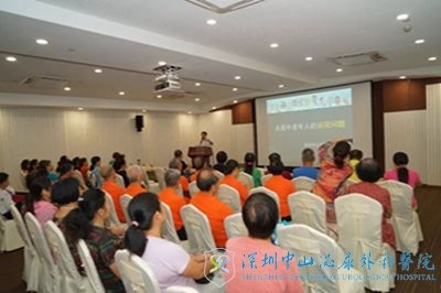 老年协会的于淑梅会长发表了讲话,她说,我们虽然都是住在这里附近的,也经常听说或路过看到“深圳中山妇产医院”,但却一直以为它主要是做“泌尿外科”的,所以说,我们对这家医院是既熟悉又陌生。今天我们一起走进这家医院,希望大家能够更多了解我们身边的这家医院。也相信这家医院能够为中老年朋友们带来幸福、健康。