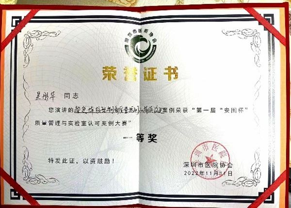 我院检验中心-遗传实验室和生殖免疫实验室的参赛案例《染色体核型制备质量控制的持续改进》和《K562细胞增殖缓慢原因剖析》从深圳市100多个案例中脱颖而出,分别获得一等奖和三等奖的好成绩。