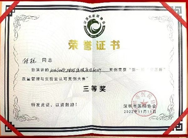 深圳市医院协会检验医学分会副会长为免疫实验室案例颁发三等奖