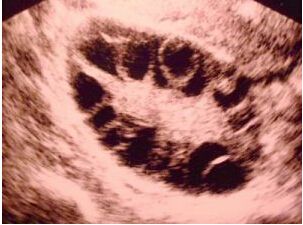 3、经阴道超声卵巢内可见到≥12个卵泡(经腹≥10个卵泡),直径在2-8mm。